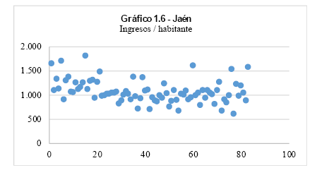 9. Tal como se mostra nos gráficos 1.1 a 1.8, para os ingresos municipais por habitante hai un alto grao de dispersión ou diversidade entre os concellos dun mesmo grupo demográfico, sobre todo nos concellos moi pequenos (menos de 500 habitantes). Dado o seu pequeno tamaño e poboación, nestes concellos a posible previsión orzamentaria dun só ingreso impositivo inusitadamente alto (por exemplo, porque nese concello ten a súa sede unha grande empresa que tributa no imposto de actividades económicas), ou a previsión dun ingreso por prezos dunha pequena empresa municipal de transformación agraria22, ou unha soa transferencia de capital cuantiosa (para unha infraestrutura esencial, por exemplo), pode ofrecer unha cifra de financiamento moi avultado23. Esas posibles contías extraordinarias tanto afectan ao grao de dispersión estatística como aos valores medios de ingresos nos distintos grupos de poboación. En xeral, e deixando agora á marxe os concellos moi pequenos, a diversidade nos ingresos municipais redúcese en proporción inversa á poboación. Aínda así, mesmo nos concellos medianos (de entre 5.001 e 20.000 habitantes) obsérvanse algunhas diferenzas importantes, só explicables por factores singulares de cada concello. Segundo isto, incluso dentro dun mesmo grupo demográfico hai diferenzas ostensibles de ingresos, non explicables a través do réxime legal de financiamento local, senón por factores específicos dalgúns concellos, entre os que se poden incluír non só condicionantes socioeconómicos, senón tamén o nivel de responsabilidade fiscal e as políticas públicas –máis ou menos activas para o aseguramento de ingresos– de cada concello. Das oito provincias consideradas, Jaén é a que presenta menor diversidade de ingresos municipais per capita, aínda que hai que ter en conta que nesta provincia apenas hai 5 concellos menores de 500 habitantes, e é precisamente este grupo de concellos o que noutras provincias presenta un maior grao de diversidade nos ingresos municipais por habitante.