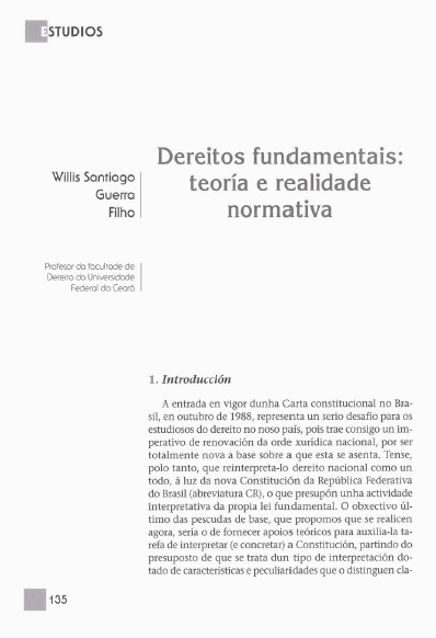 A entrada en vigor dunha Carta constitucional no Brasil, en outubro de 1988, representa un serio desafío para os estudiosos do dereito no noso país, pois trae consigo un imperativo de renovación da orde xurídica nacional, por ser totalmente nova a base sobre a que esta se asenta. Tense, polo tanto, que reinterpreta-lo dereito nacional como un todo, á luz da nova Constitución da República Federativa do Brasil (abreviatura CR), o que presupón unha actividade interpretativa da propia lei fundamental.