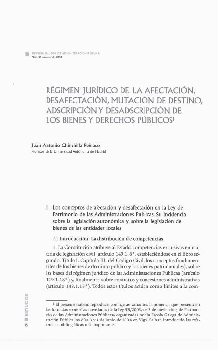 Régimen Jurídico de la afectación, desafectación, mutación de destino, adscripción y desadscripción de los bienes y derechos públicos