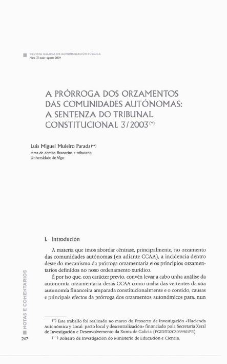La prórroga de los presupuestos de las Comunidades Autónomas: la sentencia del Tribunal Constitucional 3/2003