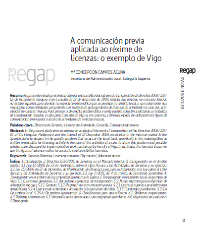La comunicación previa aplicada al régimen de licencias: el ejemplo de Vigo