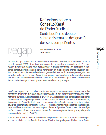 Reflexiones sobre el Consejo General del Poder Judicial. Contribución al debate sobre el sistema de designación de sus componentes