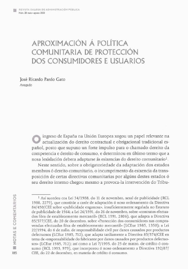 Aproximación á política comunitaria de protección dos consumidores e usuarios