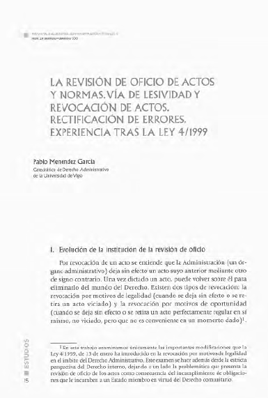 La revisión de oficio de actos y normas. Via de lesividad revocación de actos. Rectificación de errores. Experiencia tras la ley 4/1999