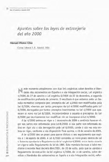 Apuntes sobre las leyes de extranjería del año 2000