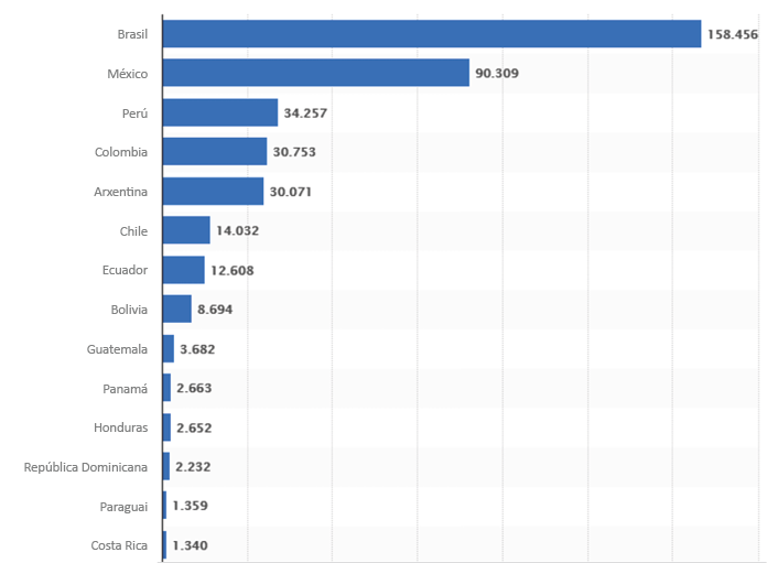 Gráfico 1. Número de persoas falecidas a causa do coronavirus (COVID-19) na América Latina