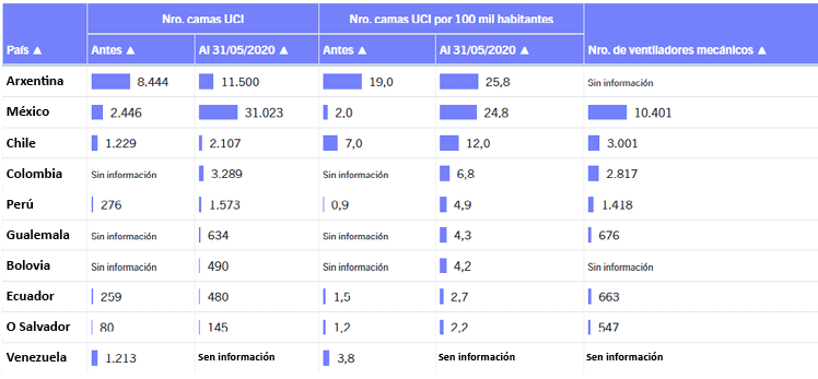 Táboa 2. Número de camas UCI na América Latina