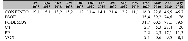 Fuente: Garrido, Martínez y Mora, 2020: 537. Elaboración a partir de barómetros del CIS.