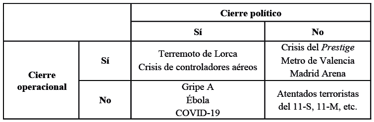 En un tipo de crisis de sombra alargada, las crisis sanitarias, como el Ébola o la gripe A, el cierre político precedió al cierre operativo, puesto que, una vez dada por clausurada la alerta sanitaria correspondiente, los protocolos de salud exigían esperar determinados periodos de tiempo para descartar la reproducción de la enfermedad.44 En otros tipos de crisis de sombra alargada, como la del Prestige, la del metro de Valencia y la del Madrid Arena, el cierre operativo antecedió al cierre político, en la medida en que la protesta organizada de los afectados y la exigencia de responsabilidades judiciales mantuvo abiertos los procesos políticos derivados de la depuración de responsabilidades por estas crisis. Este segundo subtipo de crisis de sombra alargada suele ser “mal gestionadas”, y “los grupos de víctimas sienten que no han sido atendidos suficientemente y emprenden acciones políticas y legales contra las autoridades. Esto da lugar a luchas legales prolongadas y publicidad negativa, que puede durar fácilmente una década o más.”45