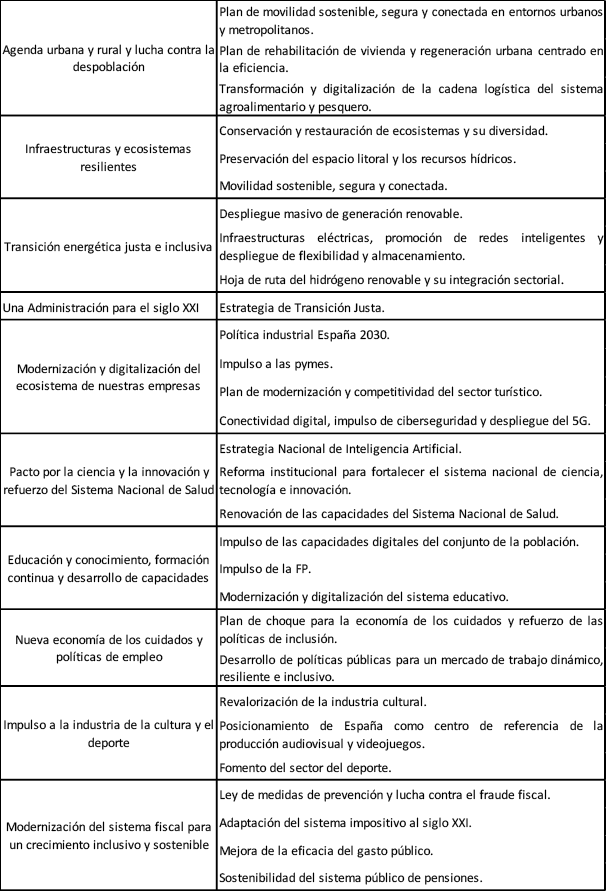 Tabla 3. Políticas palanca y líneas de actuación del Plan España Puede.