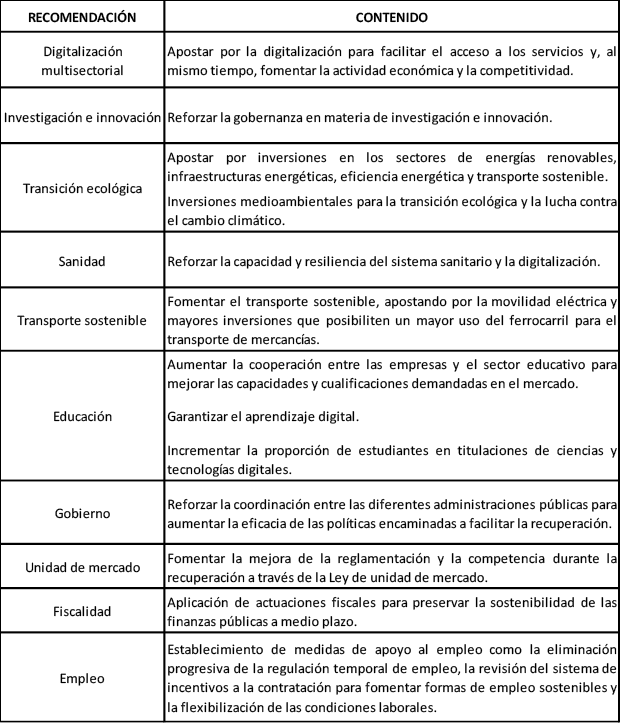 Tabla 4. Recomendaciones del Consejo Europeo para España.