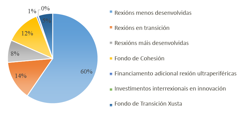 No período 2021-2027 Galicia é unha rexión en transición6, cunha porcentaxe de cofinanciamento para o obxectivo de investimento en emprego e crecemento do 60 %.