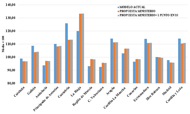 Como hemos señalado anteriormente, la gran novedad del informe del ministerio es la introducción de variables correctoras de costes, por lo que vamos a centrarnos en sus efectos.
