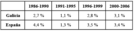 Cuadro 1. Tasas medias de crecimiento anual del PIB de Galicia y de España