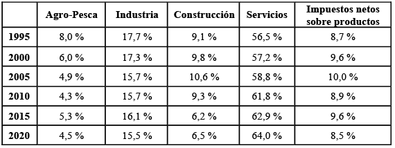 Cuadro 5. Estructura sectorial del PIB de Galicia (en porcentajes)