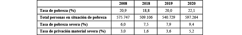 Fuente: EAPN (2021). El estado de la pobreza. Seguimiento del indicador de pobreza y exclusión social en España 2008-2020.