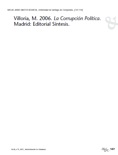 Villoria, M. 2006. La Corrupción Política. Madrid: Editorial Síntesis.