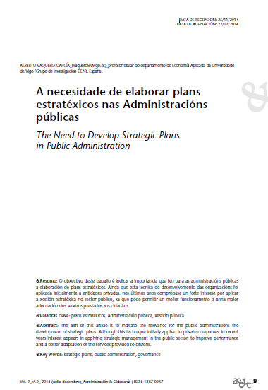 O obxectivo deste traballo é indicar a importancia que ten para as administracións públicas a elaboración de plans estratéxicos. Aínda que esta técnica de desenvolvemento das organizacións foi aplicada inicialmente a entidades privadas, nos últimos anos compróbase un forte interese por aplicar a xestión estratéxica no sector público, xa que pode permitir un mellor funcionamento e unha maior adecuación dos servizos prestados aos cidadáns.