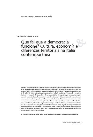 Que fai que a democracia funcione? Cultura, economía e diferenzas territoriais na Italia contemporánea