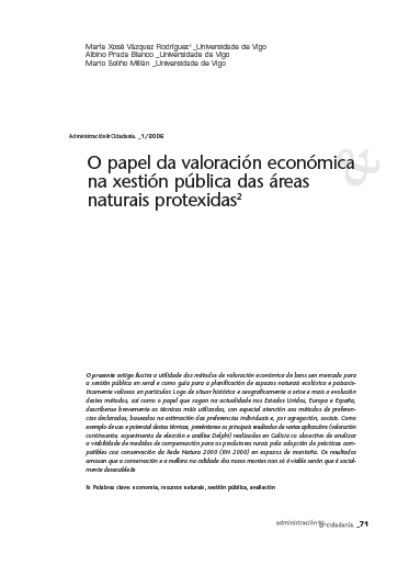 O papel da valoración económica na xestión pública das áreas naturais protexidas