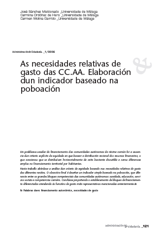 As necesidades relativas de gasto das CC.AA. Elaboración dun indicador baseado na poboación