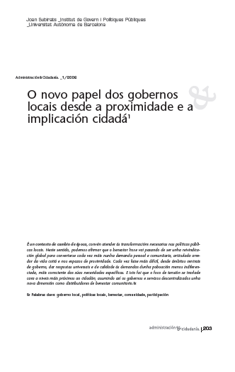 O novo papel dos gobernos locais desde a proximidade e a implicación cidadá