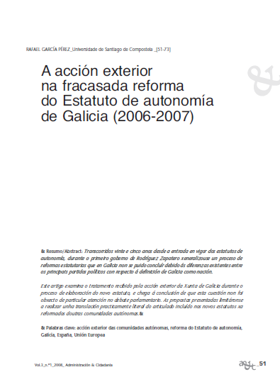 A acción exterior na fracasada reforma do Estatuto de autonomía de Galicia (2006-2007)