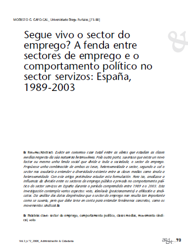Segue vivo o sector do emprego? A fenda entre sectores de emprego e o comportamento político no sector servizos: España, 1989-2003