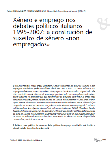 Xénero e emprego nos debates políticos italianos 1995-2007: a construción de suxeitos de xénero «non empregados»