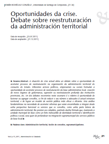 Oportunidades da crise. Debate sobre reestruturación da administración territorial