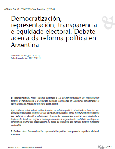 Democratización, representación, transparencia e equidade electoral. Debate acerca da reforma política en Arxentina