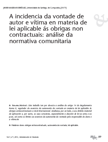 A incidencia da vontade de autor e vítima en materia de lei aplicable ás obrigas non contractuais: análise da normativa comunitaria