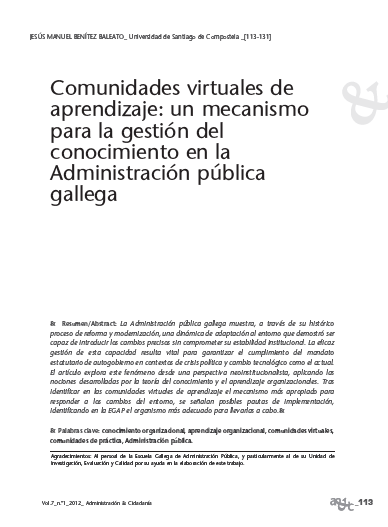 Comunidades virtuais de aprendizaxe: un mecanismo para a xestión do coñecemento na Administración pública galega