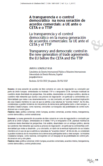 A transparencia e o control democrático na nova xeración de acordos comerciais: a UE ante o CETA e o TTIP