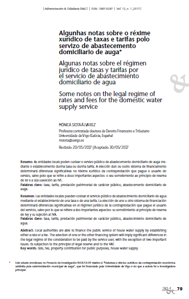 Algunhas notas sobre o réxime xurídico de taxas e tarifas polo servizo de abastecemento domiciliario de auga