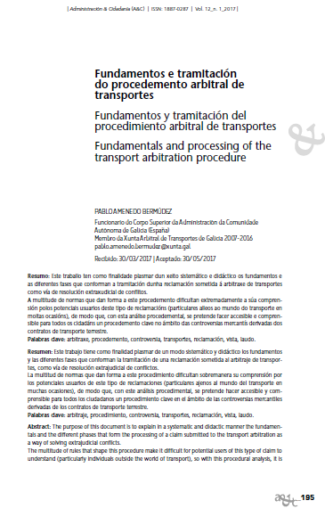 Fundamentos e tramitación do procedemento arbitral de transportes