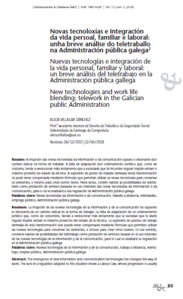 Novas tecnoloxías e integración da vida persoal, familiar e laboral: unha breve análise do teletraballo na Administración pública galega