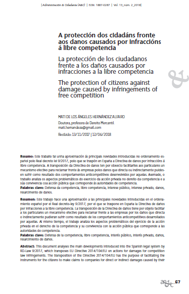 A protección dos cidadáns fronte aos danos causados por infraccións á libre competencia
