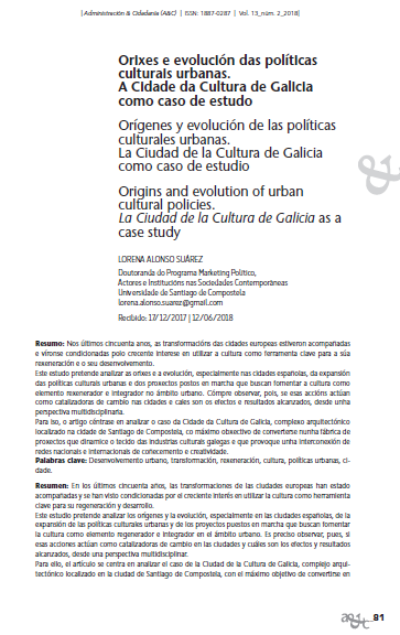 Orixes e evolución das políticas culturais urbanas. A Cidade da Cultura de Galicia como caso de estudo