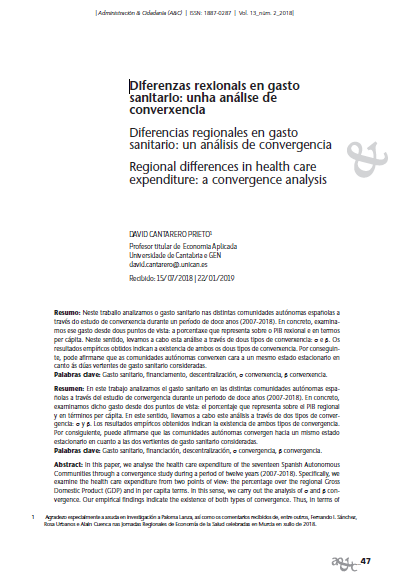 Diferenzas rexionais en gasto sanitario: unha análise de converxencia