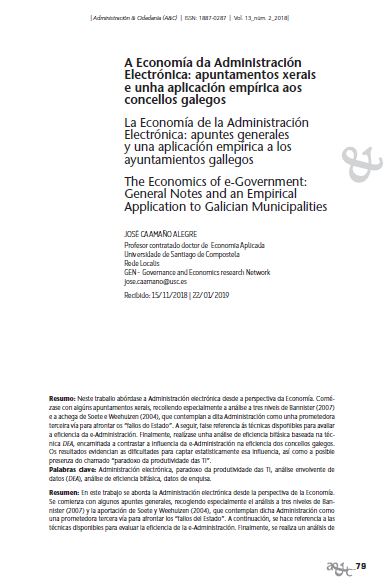 A Economía da Administración Electrónica: apuntamentos xerais e unha aplicación empírica aos concellos galegos