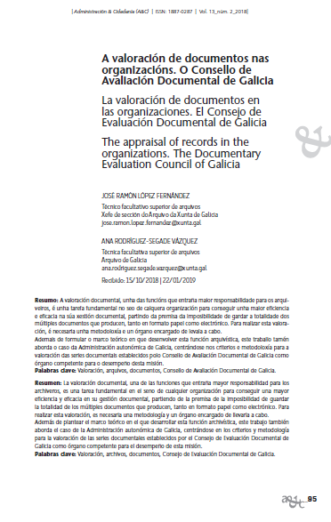 A valoración de documentos nas organizacións. O Consello de Avaliación Documental de Galicia