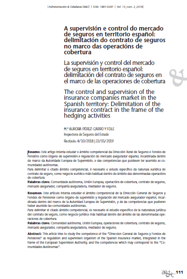 A supervisión e control do mercado de seguros en territorio español: delimitación do contrato de seguros no marco das operacións de cobertura