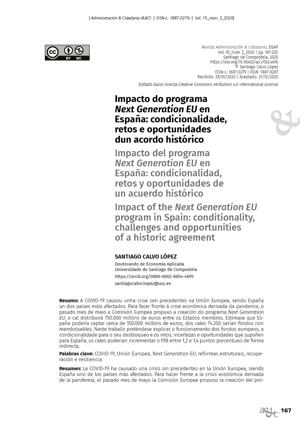 Impacto do programa Next Generation EU en España: condicionalidade, retos e oportundiades dun acordo histórico