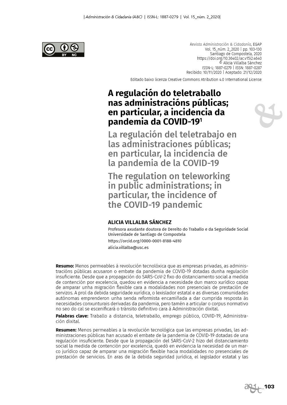 A regulación do teletraballo nas administracións públicas; en particular, a incidencia da pandemia da COVID-19