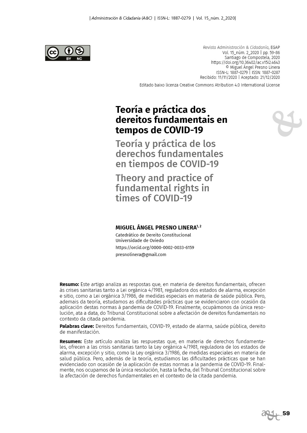 Teoría e práctica dos dereitos fundamentais en tempos de COVID-19