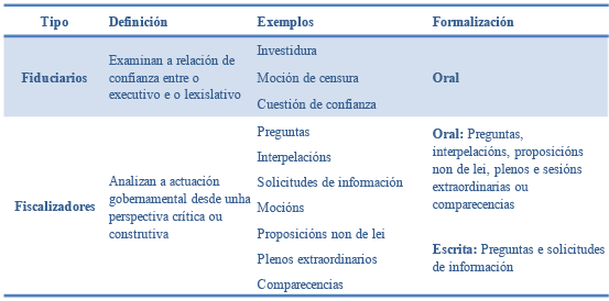 Táboa 2. Mecanismos funcionais de control parlamentario
