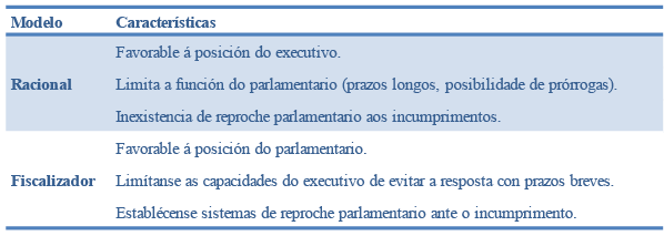 Táboa 6. Modelos de control parlamentario escrito