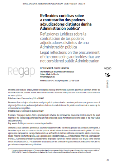 Este traballo analiza, desde unha óptica práctica, determinadas cuestións polémicas que xiran arredor do réxime xurídico dos poderes adxudicadores distintos dunha Administración pública no marco da nova Lei de contratos do sector público.