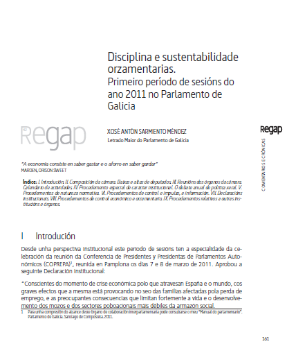 Disciplina y sustentabilidad presupuestarias. Primer período de sesiones del año 2011 en el Parlamento de Galicia